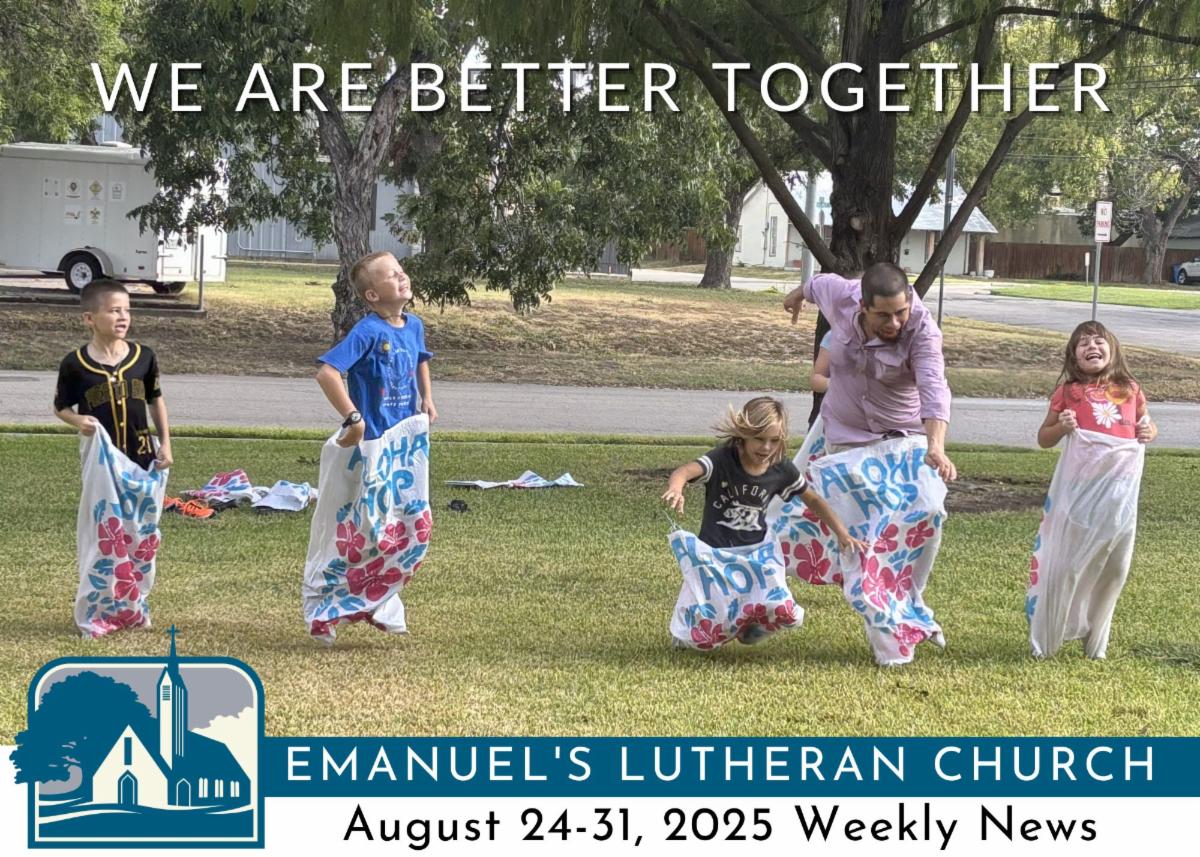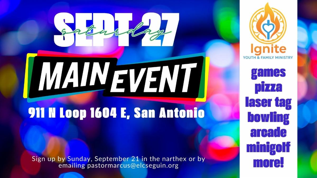 | | 2026 Emanuel's All-Church Retreat is January 23-25. Hosted by Cross Trails Ministry, our weekend will be a time of rest and renewal, games and activities, fellowship and fun, and time spent away at beautiful Camp Chrysalis. There will be chances to explore, hike, do archery, canoe, sing and worship, create arts & crafts, and participate in service projects. Starry nights and s’mores, too! Please take a moment to fill out the interest forms in the narthex or via the link below so that our team can best prepare for the weekend. We hope you will join us for this amazing retreat with our Synod’s camping program! | | IGNITE YOUTH AND FAMILY: Join us for our first Ignite Youth & Family event of the fall school semester! We will gather at "Main Event" on Loop 1604 for games, pizza, laser tag, and bowling! Sign-up by Sunday, September 21 in the Narthex or by emailing Pastor Marcus or Charis! We will be purchasing games and activity cards for our youth who want to come and we need a good head count. We hope you can make it! | | |