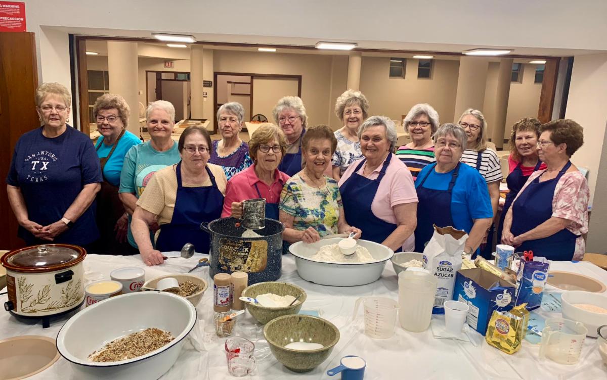 | Ladies Aid completed another successful year of baking hundreds of coffee cakes. Did you know that Paul S. supplied farm fresh eggs and Maxine H. provided pecans from her own trees? So much love in every cake! Thank you to everyone for supporting this annual fundraiser. Didn't make it on a baking day? Extra cakes will be available for purchase on Homecoming Sunday. | |