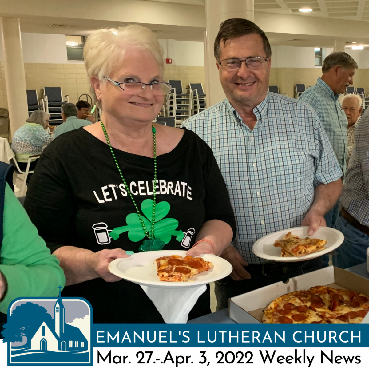 Because Lutherans want everyone to have space to learn, grow, and play (pt. 2): we open our doors to an array of interesting groups. On Third Thursdays the Senior Social Club gathers for lunch and shenanigans in the Family Life Center. Sandra and Ron S. were full of Irish cheer on St. Patrick's day last week. "Ní neart go cur le chéile" translates from Irish to "There's strength in unity," or as we like to say at Emanuel's: We are better together.