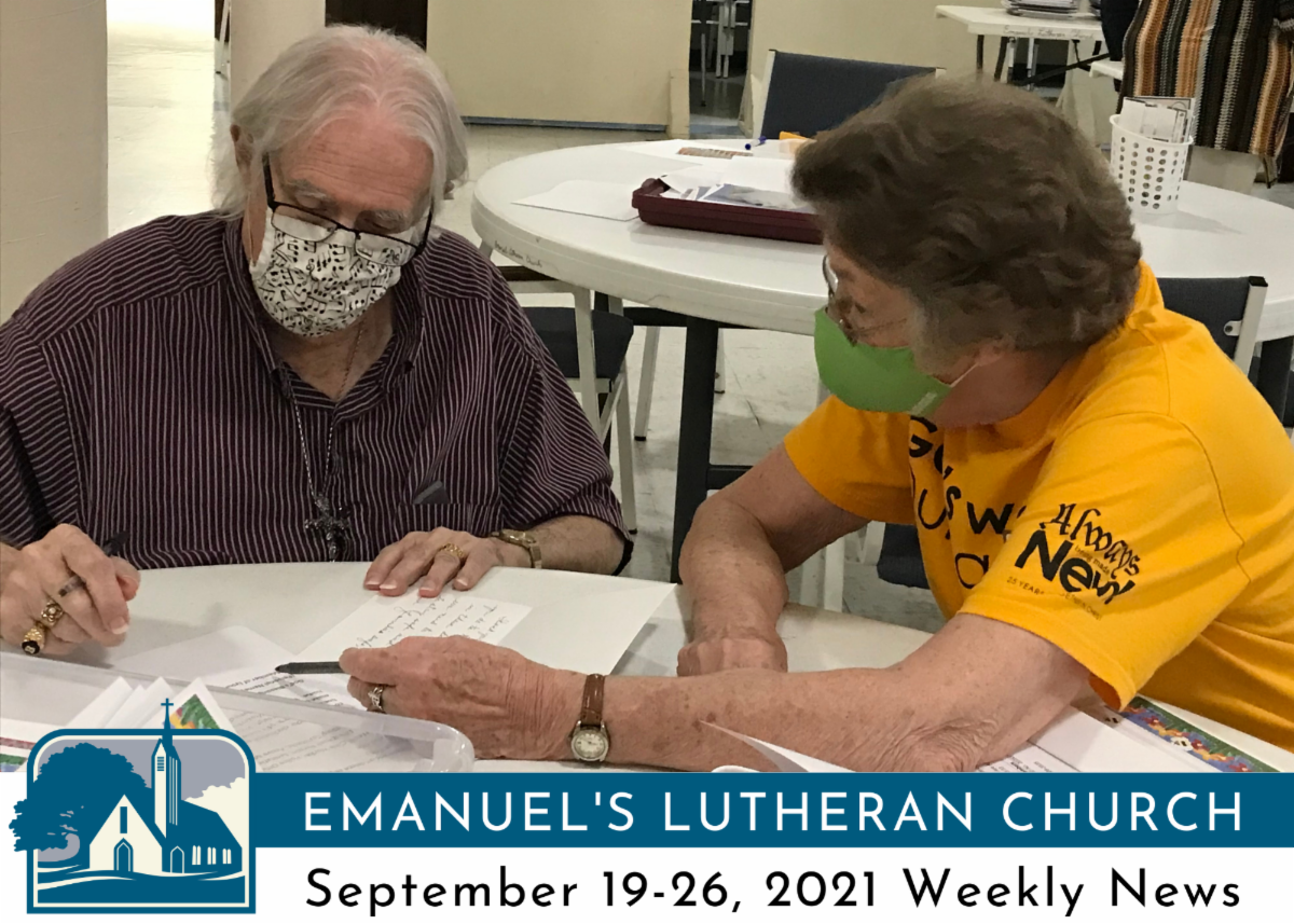 CAREGIVER SUPPORT GROUP: Emanuel’s hosts a community Support Group for Caregivers currently caring for loved ones with Alzheimer’s, Parkinson’s, Dementia, and other aging issues. Meeting at 10am in the Family Life Center on Wednesday, September 22, repeated Saturday, September 25. Facilitators are the Rev. John and Faye Van Deusen. You can reach Rev. John at (830) 305-5658 and Faye at (830) 305-8851.