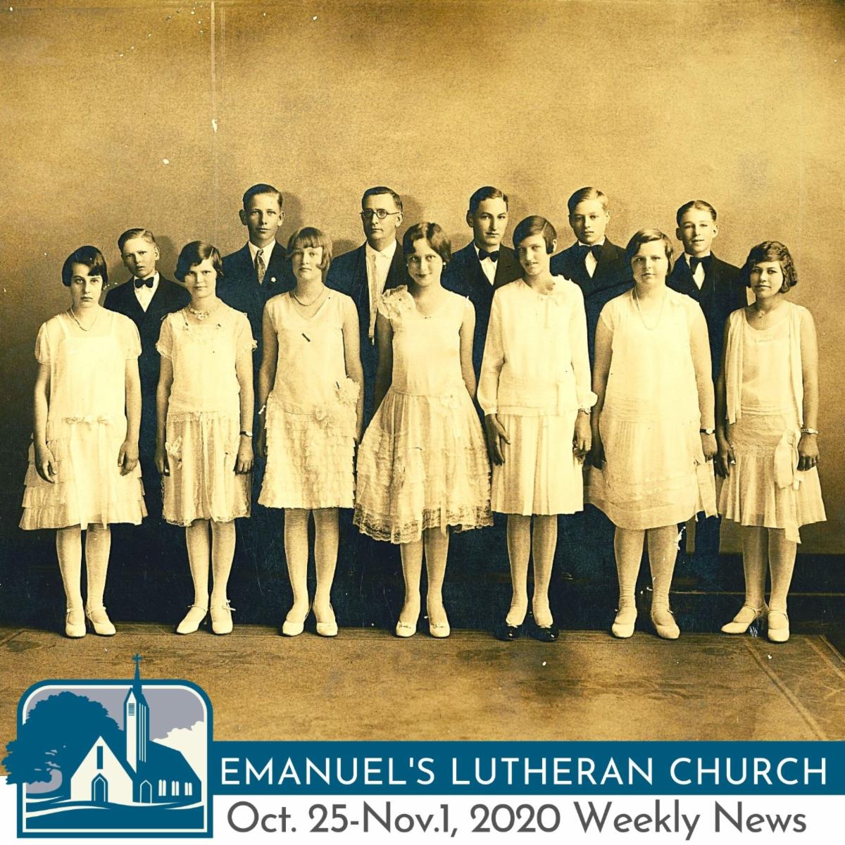 Because Lutherans love (historic) group photos: These Emanuel's teens from the NINETEEN-twenties aren't so different from our current confirmation class. They, too, lived through a pandemic and wondered what the future might hold in store. Both groups were loved, guided and prayed for during their catechism classes by their pastors and families. All these youth were given solid foundations for their life-long adventures of living out their Christian faith. Excited to see our handsome 2020 Confirmation Class this Sunday! We are in this together. WE ARE BETTER TOGETHER. We may be apart, but we are not alone.
