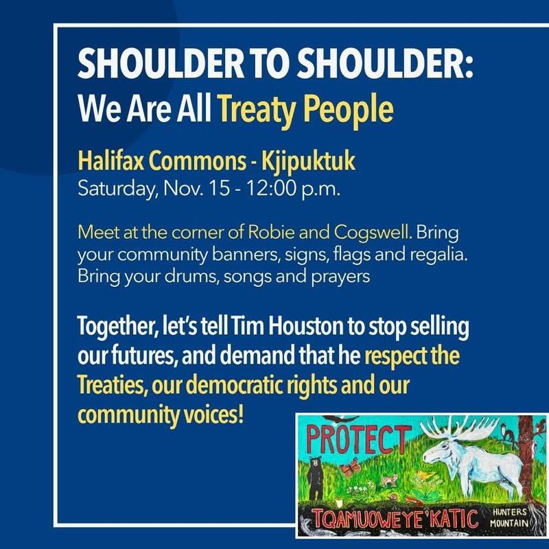 On Saturday, November 15 at 12pm, meet at the Halifax Commons - Kjipuktuk for a rally to protect Tqamuoweye'katic.