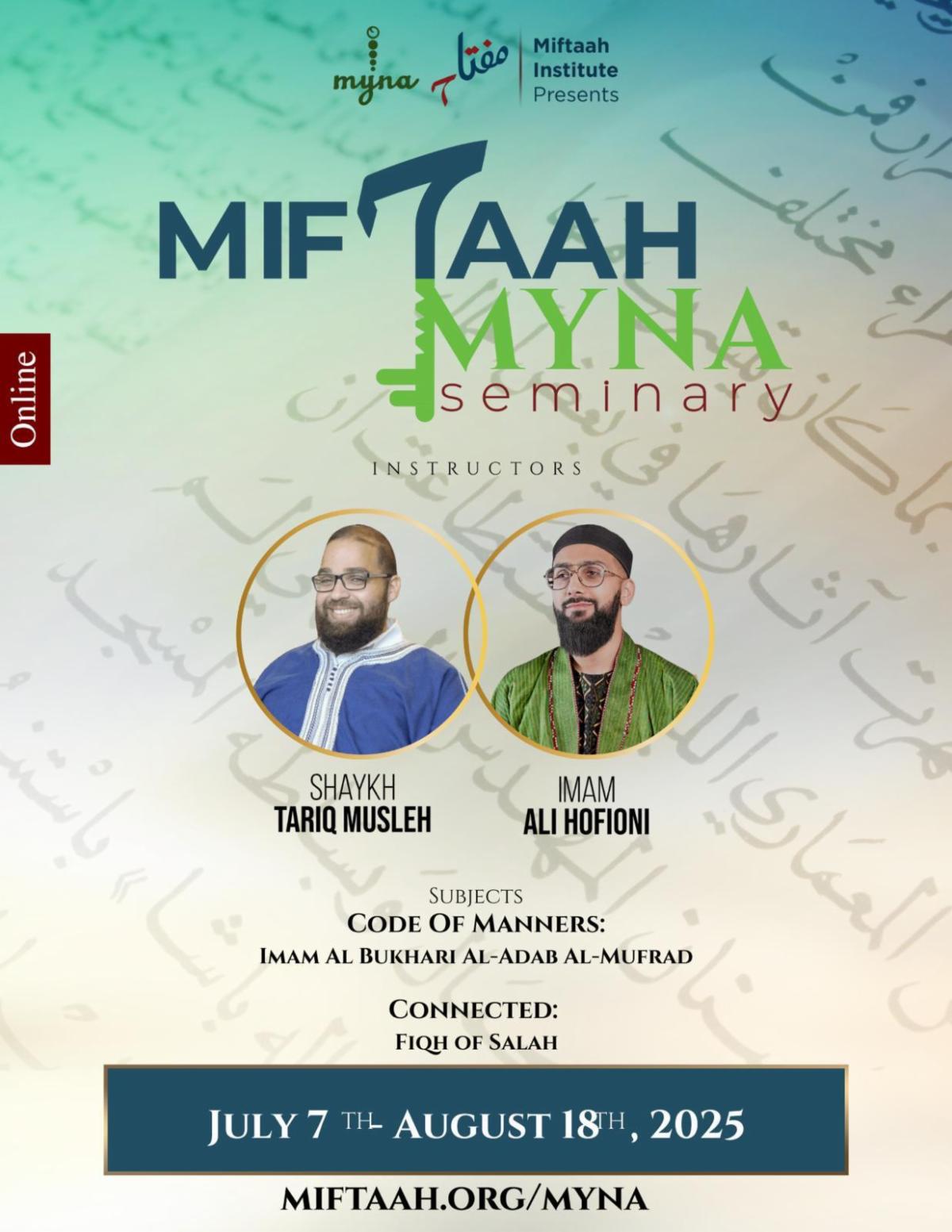 Miftaah x MYNA Seminary is back—online, flexible, and designed for youth like you who are serious about both personal growth and service to others. It's an incredible way to refill your cup, deepen your connection with Allah, and grow in knowledge as a leader in our community.
