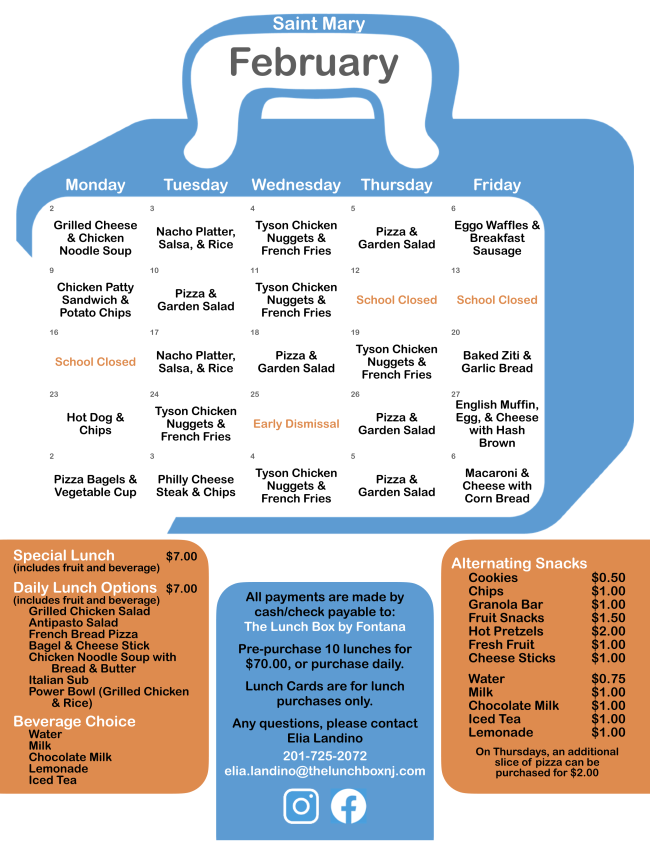 The evening together was a great joy for all, and I am especially grateful to Madeline McCoy and several Saint Mary School students who lovingly cared for the older children during the dinner. Madeline is a tremendous blessing to Saint Mary’s, and her generosity of heart reflects the spirit of service we hope to foster in all our students. If you are parents with a young baby and would like to participate in our next young family dinner, please feel free to email me at frjeffkegley@aol.com or text me at 609-954-3356. Until then, please be assured of my daily prayers for the entire Saint Mary School community.