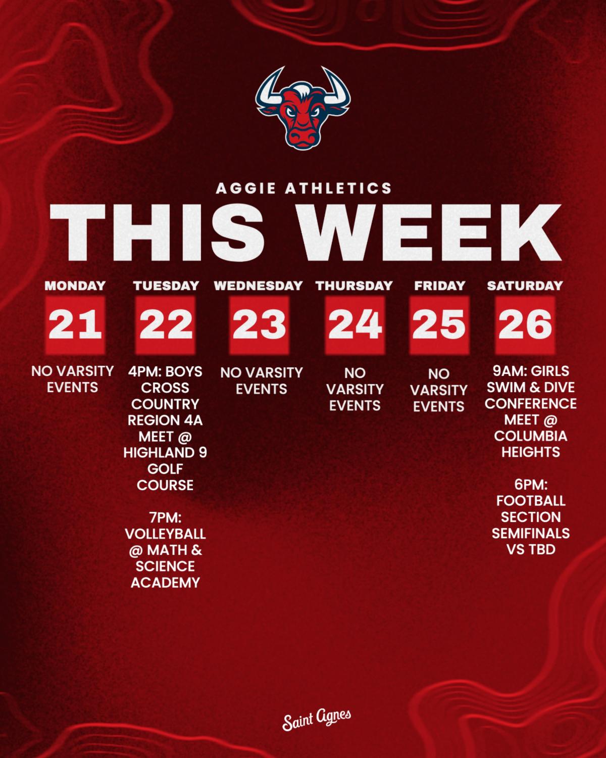 See the Saint Agnes athletic calendar for all times, locations, and livestreams for this week's games.