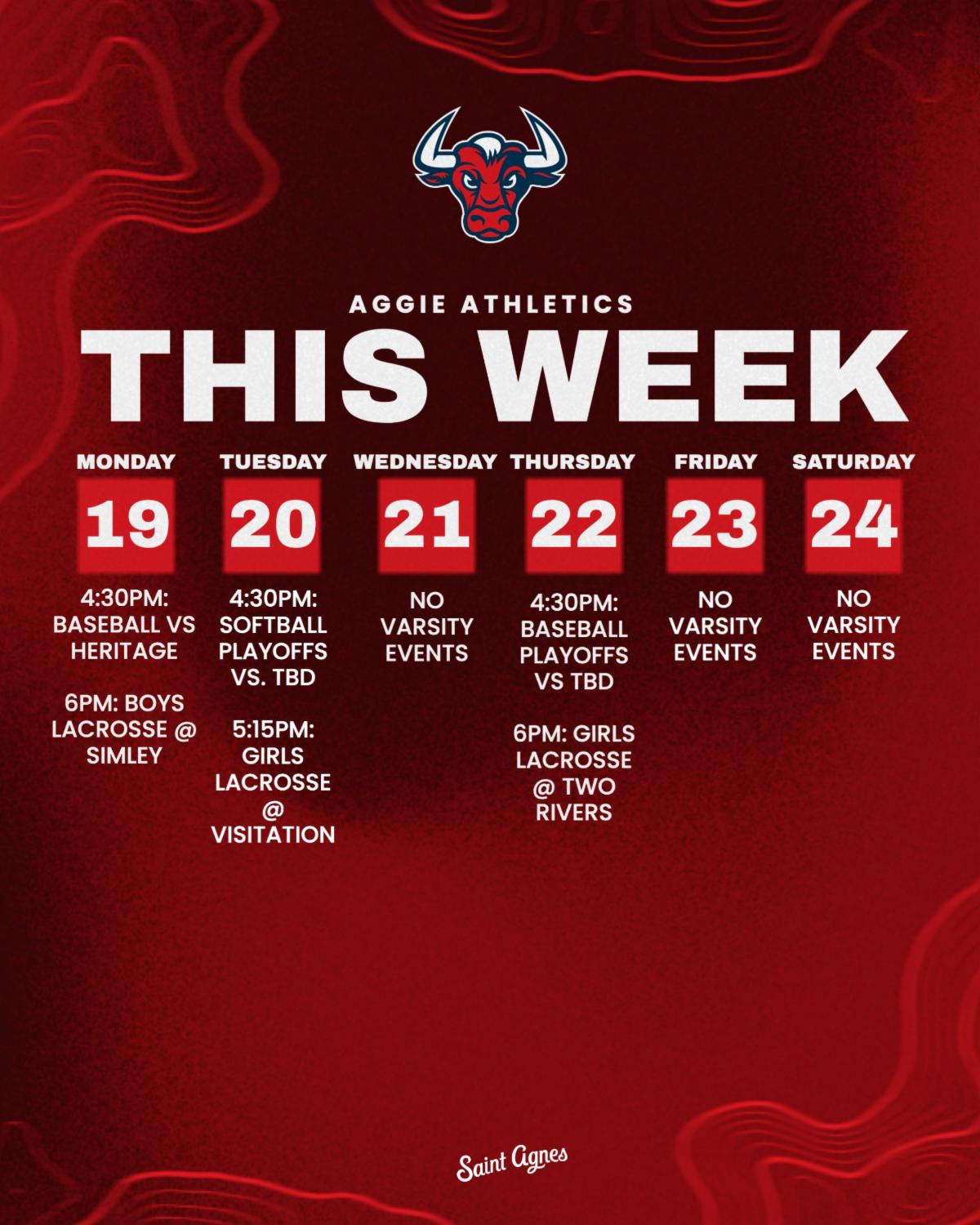 See the Saint Agnes athletic calendar for all times, locations, and livestreams for this week's games.