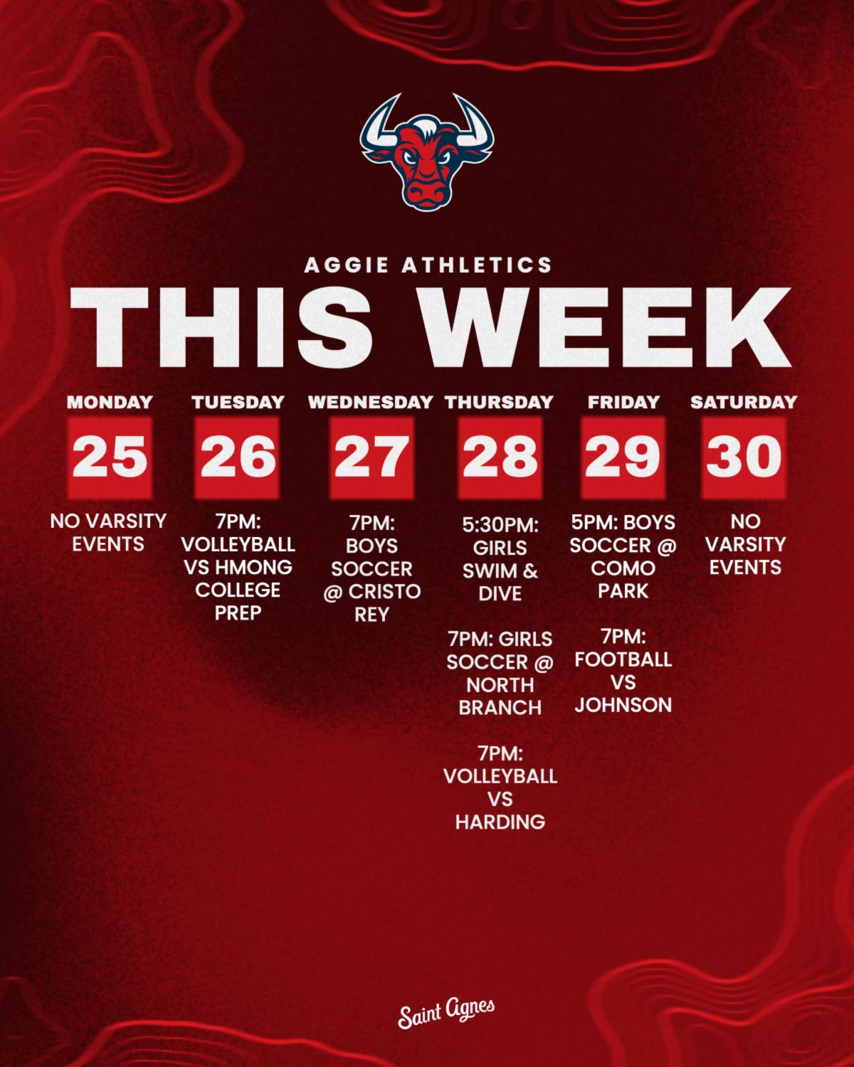 See the Saint Agnes athletic calendar for all times, locations, and livestreams for this week's games.