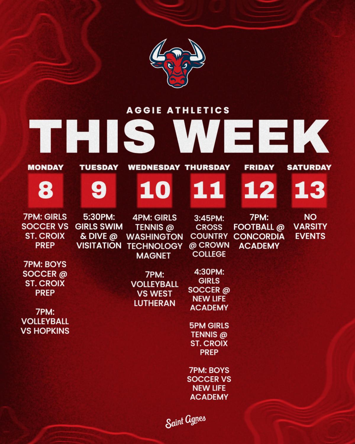See the Saint Agnes athletic calendar for all times, locations, and livestreams for this week's games.