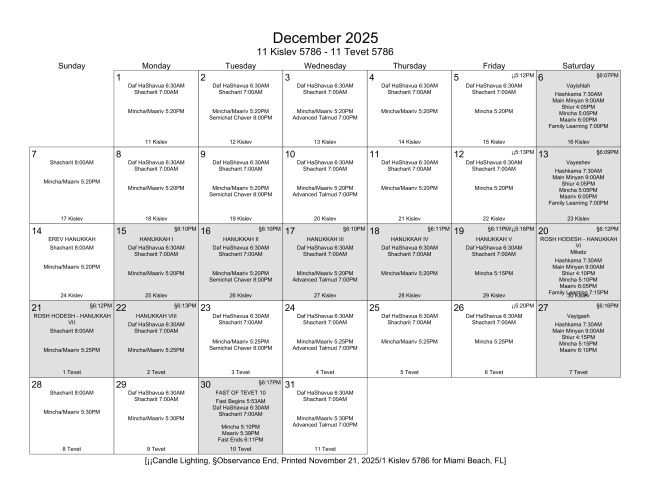 Beth Israel Congregation December 2025 Calendar