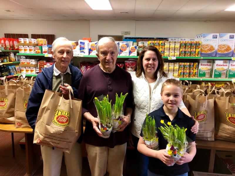 Thanks to everyone who helped us to collect the needed items to help bless a family with an Easter Dinner. Our Confirmation Class assembled the 52 Easter meals for Hebron Interfaith Human Services and those in need after worship this past Sunday. Bob Owens, Joe Sheehan, Tucker Haines and Stephanie Haines delivered the dinners along with potted daffodils as a message of love and hope!