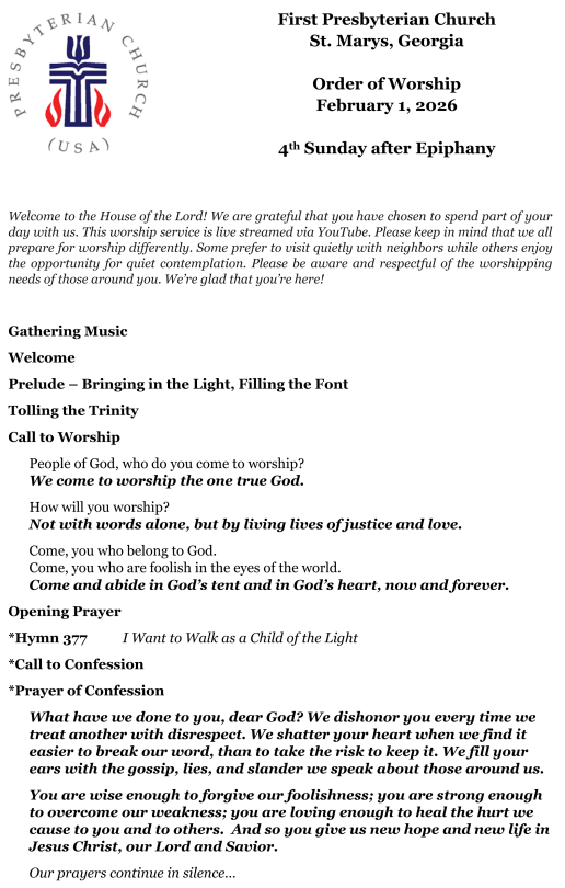 On February 1, please join us in the Fellowship Hall after service as we welcome Quilts of Valor for a special presentation. The organization’s mission is to honor and thank service members and veterans for their dedication and sacrifice in defending our freedom.