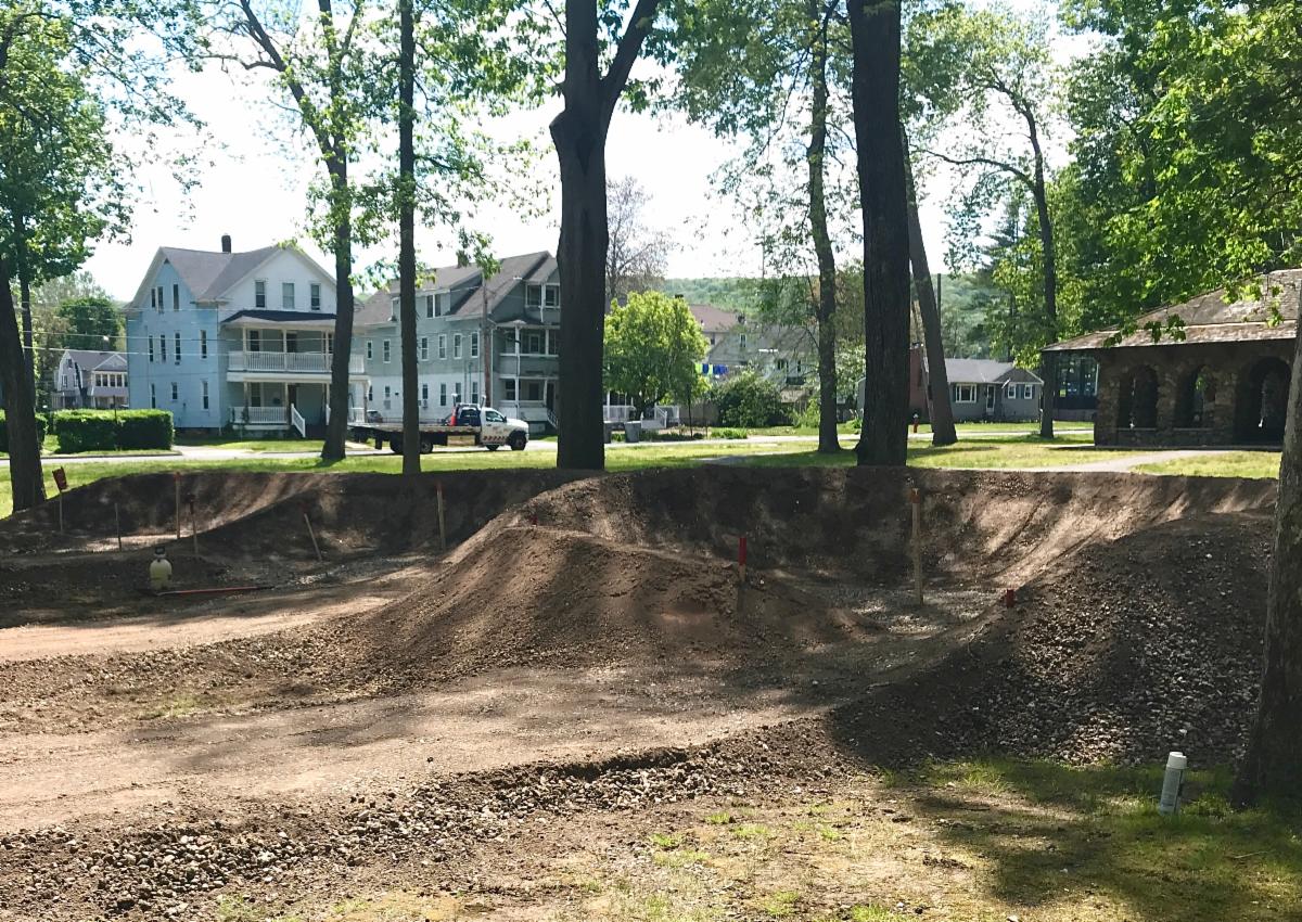 Construction is underway for a bike pump park at Rockwell Park, adjacent to the Stonehouse. A pump park is a bike track designed in a loop consisting of banked turns and other features that allow riders to learn to gain and maintain speed by riding the terrain rather than just pedaling. Pump parks are fun, a good workout, and a way to build mountain biking skills and confidence. The family-friendly pump park headed for Rockwell is designed for all ages and abilities and will serve as a training area for young people and adults to learn and practice their biking skills, prior to tackling our trail system.