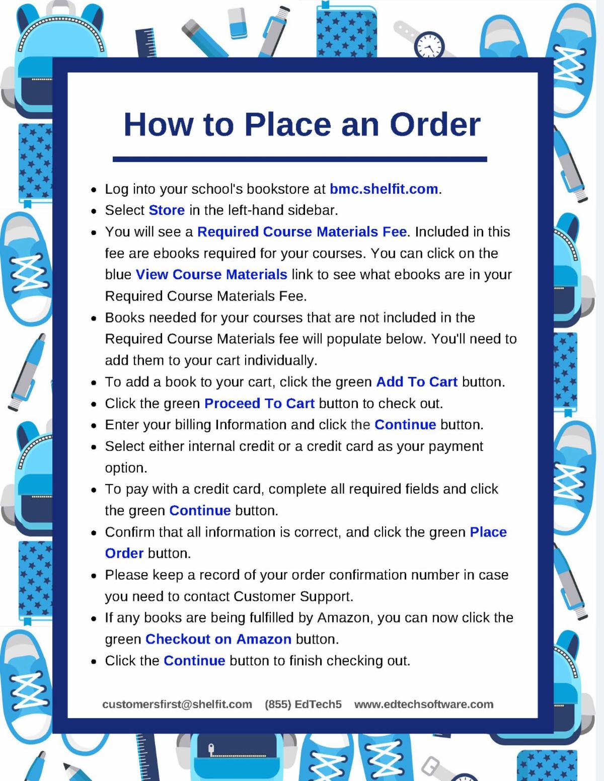 Each student will have access to their own individual page once he/she signs on to the school's bookstore at bmc.shelfit.com.