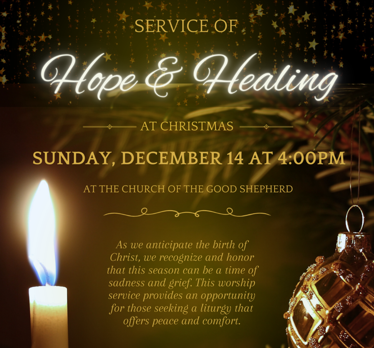 Advent 3: Service of Hope and Healing, December 14 at 4 PM