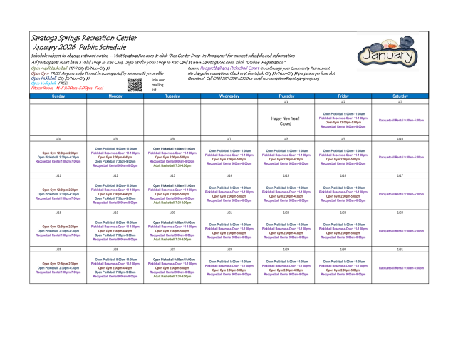 As always, if you have any questions or trouble regarding registration, please email us at RecReservations@saratoga-springs.org or give us a call at (518) 587-3550 ext 2300.