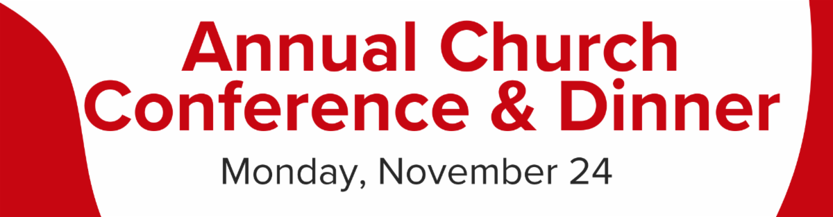 You are invited to connect with one another before the conference and share a delicious meal prepared by Chef Hollie. The gathering begins at 5:30 p.m. in Fellowship Hall with dinner (by reservation) being served at 6:00 p.m. The conference will begin in the Sanctuary at 7:00 p.m. RSVP for dinner by Wednesday, November 19 by clicking the button below, or by signing up at the Kiosk on Sunday morning.
