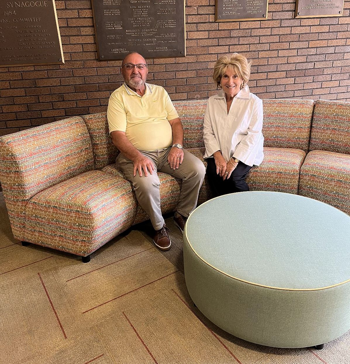 Lobby Upgrades! Come sit and enjoy the newly upholstered couches and ottomans in the Banks Garden Lobby. Thank you to Gail Weinstein and Alan Goodman (pictured) for taking on the task of upgrading and beautifying our comfortable couches.