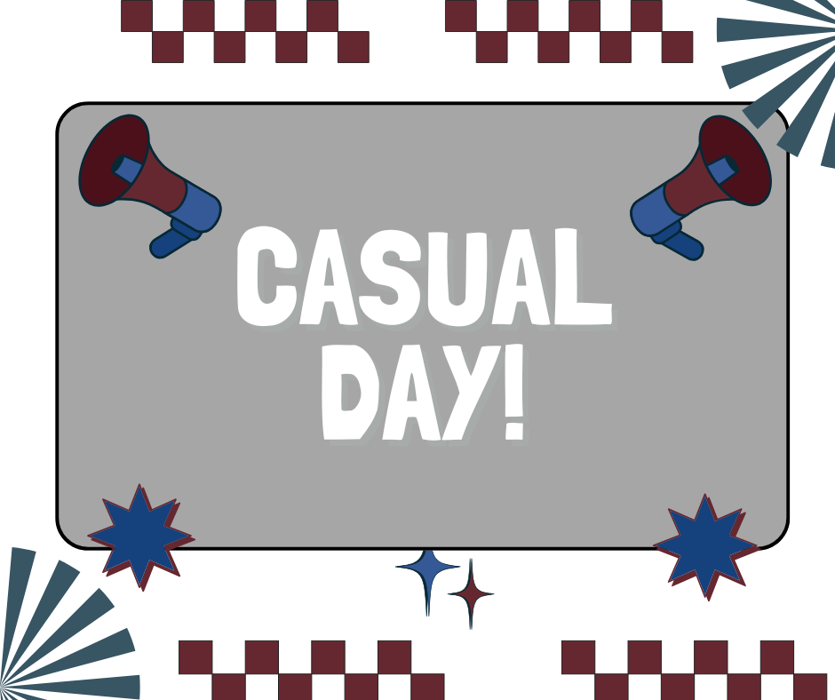 Next week, we have two casual days. Friday's casual day was already scheduled. We will also have a casual day on Thursday in recognition of students filling our front bulletin board with Eagles. See details about both days below.