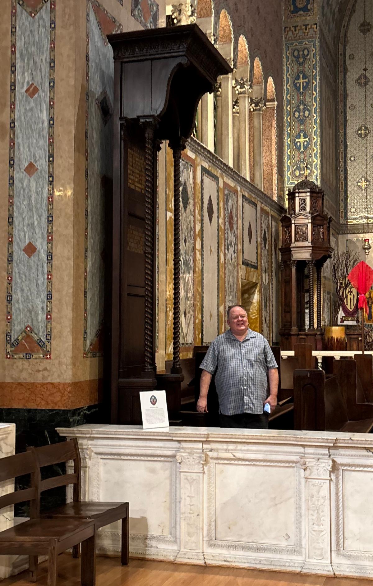 On March 30 a new sacred piece of diocesan furniture made its way over from Echo Park to West Adams Boulevard. Canon for Common Life, Bob Williams, is proudly pictured here next to the 'Dean's Chair' handcrafted in 1924 for the former diocesan cathedral, St. Paul's. Canon Bob has been advocating tirelessly for the chair to return to use at the cathedral. St. Paul's was closed in 1980 after it was determined that earthquake damage was too expensive to be repaired. The chair has been located at Diocesan House, then the Cathedral Center of St. Paul (today St. Paul's Commons) from 1994 to 2026. The chair was created to match the bishop's cathedra which is also pictured and was moved to St. John's in 2019. The chair displays the names of previous deans and provosts who have served the diocese since 1901. Later this spring, the listing will be updated to include the cathedral's most recent deans since 2008.