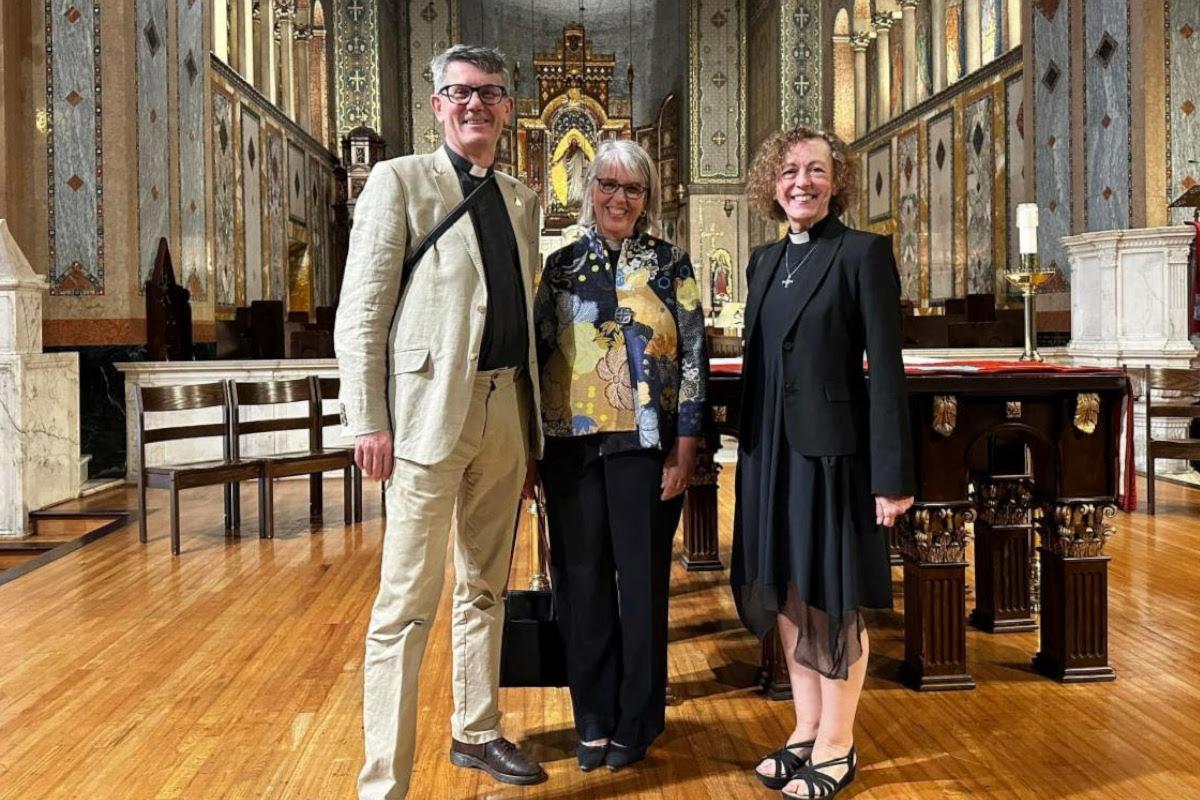 Dawn is canon theologian for the Diocese of Rhode Island, a former assistant dean at Yale Divinity School, and wife of the Very Rev. Andrew Tremlett, dean of St. Paul's Cathedral in London. She is also an indie rock musician and songwriter. (Tremlett and Dawn visited L.A.'s St. John's Cathedral, where they are pictured with the Very Rev. Anne Sawyer, interim dean and priest-in-charge) on Feb. 6.
