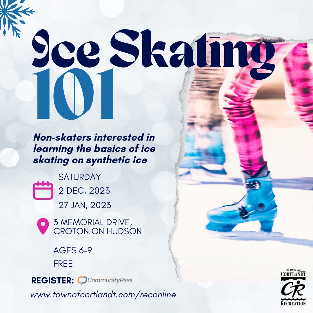 Snow excited! Register online today at www.townofcortlandt.com/reconline for our new learn to skate program, Ice Skating 101! This free program is for children ages 6- 9 and utilizes the new Town of Cortlandt Synthetic Ice Rink located at 3 Memorial Drive in Croton on Hudson. | |