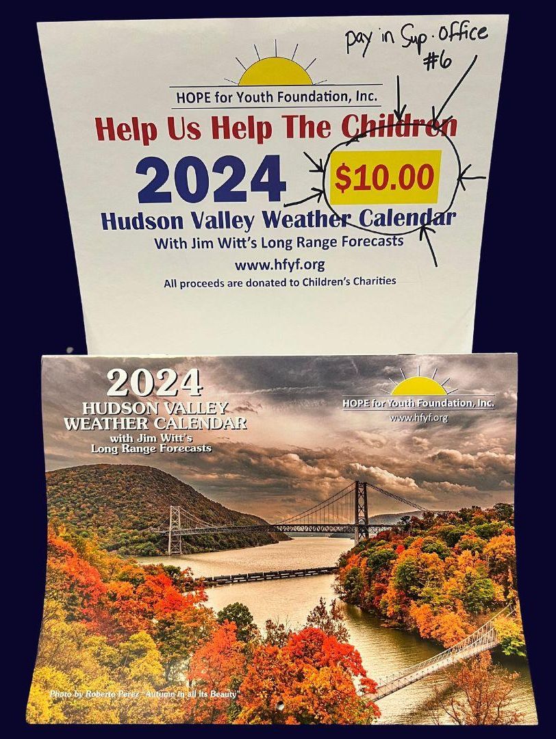 This remarkable calendar, using Jim Witt’s extensive research, gives the weather for the Hudson Valley for every day of 2024. When you purchase the Long Range Weather Calendar your contributions provide assistance to the Hope For Youth Foundation.