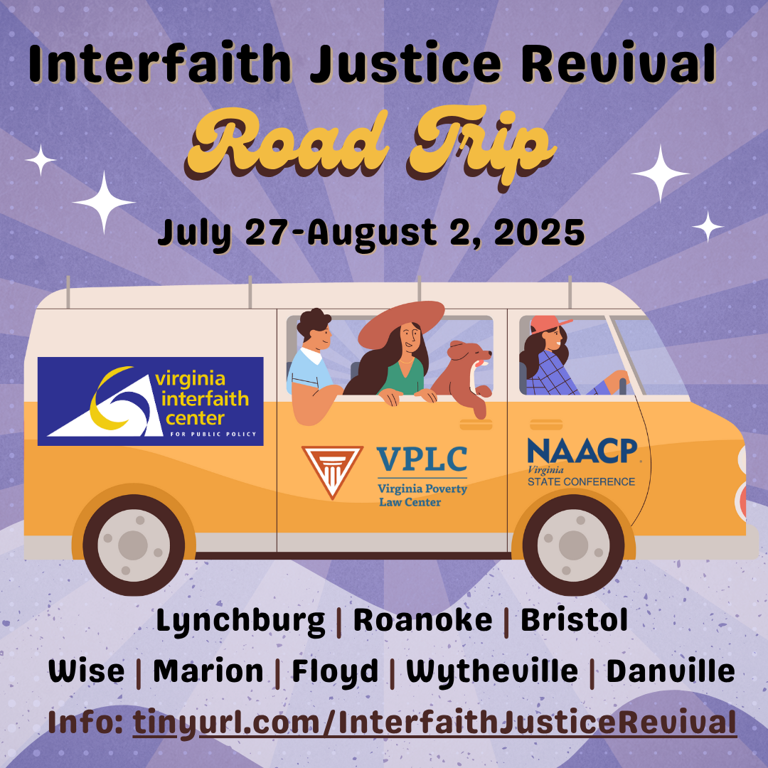 Over the summer of 2025, the Virginia Interfaith Center is organizing “Interfaith Justice Revival” events in collaboration with the Virginia Poverty Law Center and the Virginia NAACP. Taking inspiration from old-school religious gatherings, we hope to motivate action toward making the world a better place for all. VICPP is partnering with local leaders to build relationships and create a welcoming space. We are excited to speak about the integral tie between faith and justice. Faith and community leaders from different traditions will share reflections on justice, and the importance of civic engagement in anticipation of the November election.