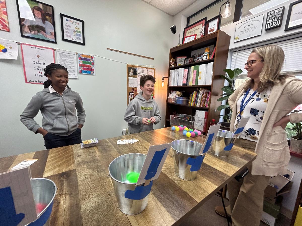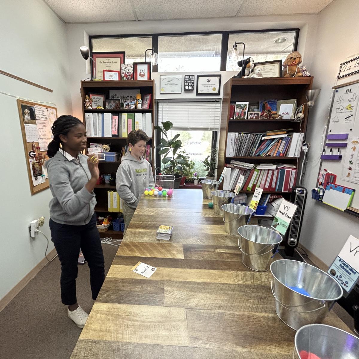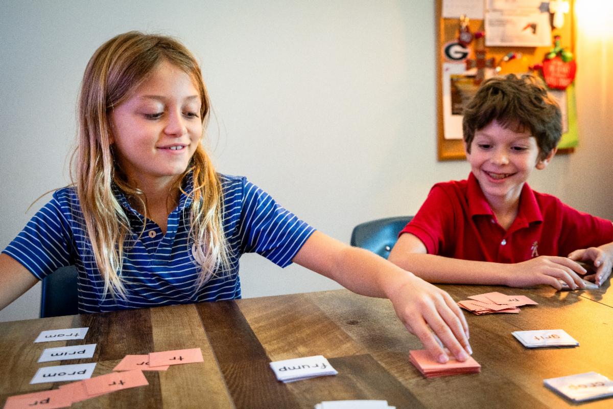Our Around the World project took an exciting trip to Europe today! Our 4th graders hosted a special Zoom session with Ms. Grip's mother (also a teacher) and her French class in Texas, giving our students a firsthand look at the vibrant culture of France. It was a wonderful opportunity to bring our global studies to life through a real-world connection. | | Who knew phonics could be so competitive? Our Middle Schoolers used a multisensory ping-pong game to practice identifying open and closed vowels in their OG lessons. | | It was a day full of hands-on discovery in our Lower School! From using wooden math manipulatives to visualize pairs and "make 10," to color-coding words for rapid reading practice, and even a fast-paced spelling scramble game—our learners were moving and grooving through their curriculum! | | |