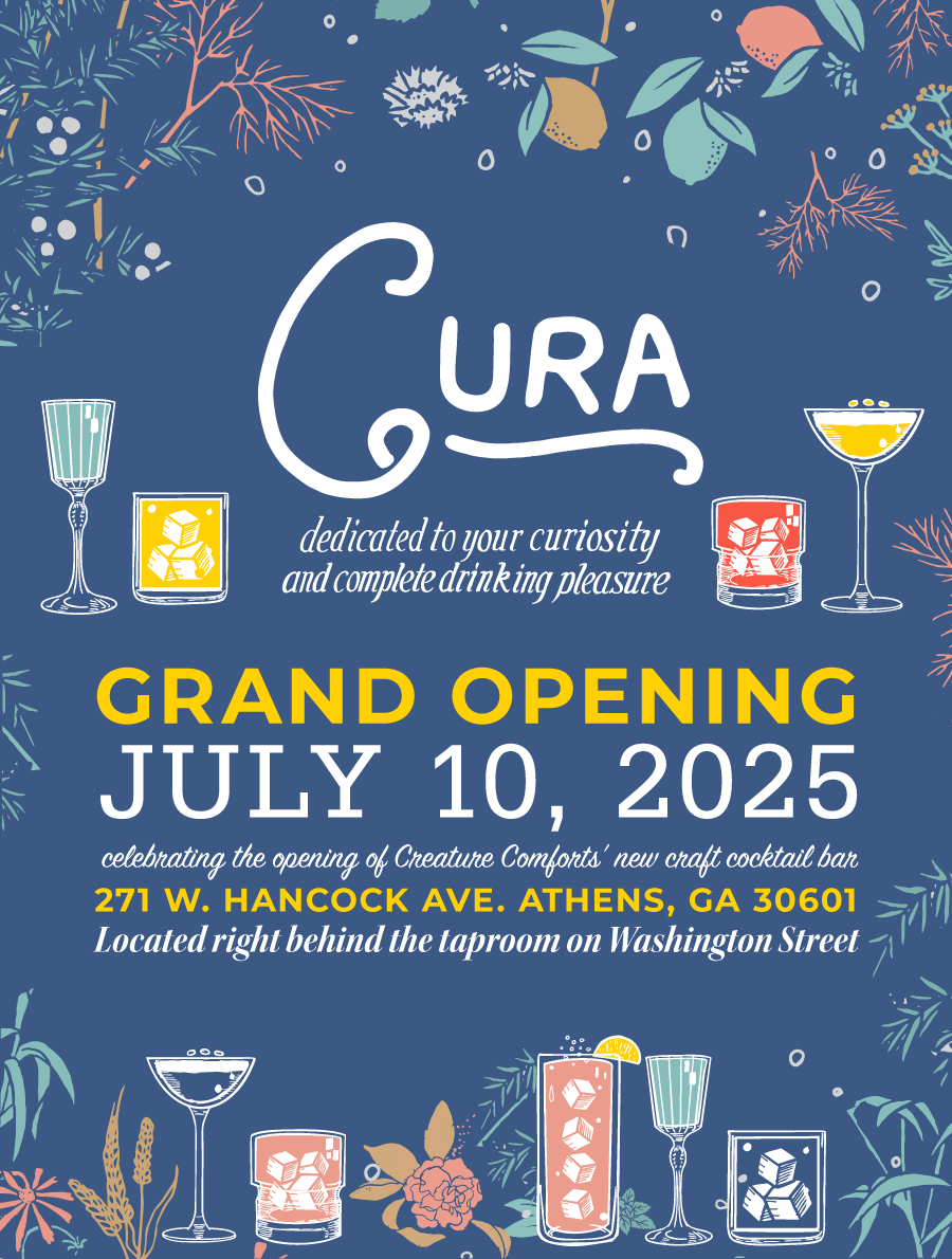 Please join the Athens Area Chamber of Commerce as we celebrate the ribbon cutting for Cura, Creature Comforts' new cocktail bar! Creature Comforts Brewing Company, an award-winning, purpose-driven Athens-born craft brewery and now distillery, is excited to announce the opening of Cura, a cocktail bar, on July 10th at 5 pm in downtown Athens