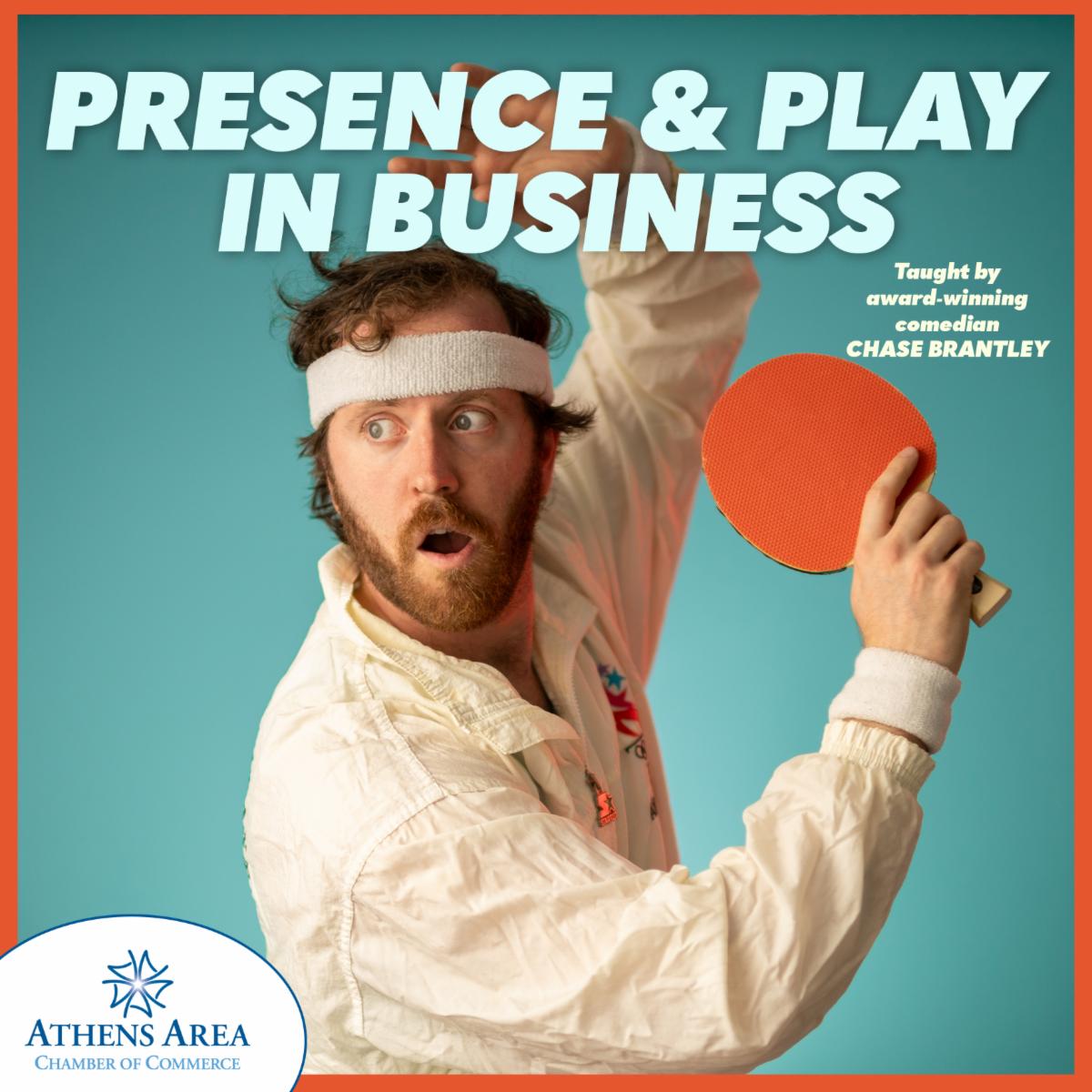 Presence & Play in Business is a dynamic, experiential workshop for Athens Area entrepreneurs, leaders, and business owners who want to get out of their heads, connect more deeply with clients and colleagues, and feel more freedom in front of a crowd. Led by Chase Brantley, an award-winning performer and director, this workshop taps into a deeper, more playful way of showing up in your work and leadership. Through lighthearted games, you'll explore how and when you're most charming, most loved, and most effective in front of a crowd.