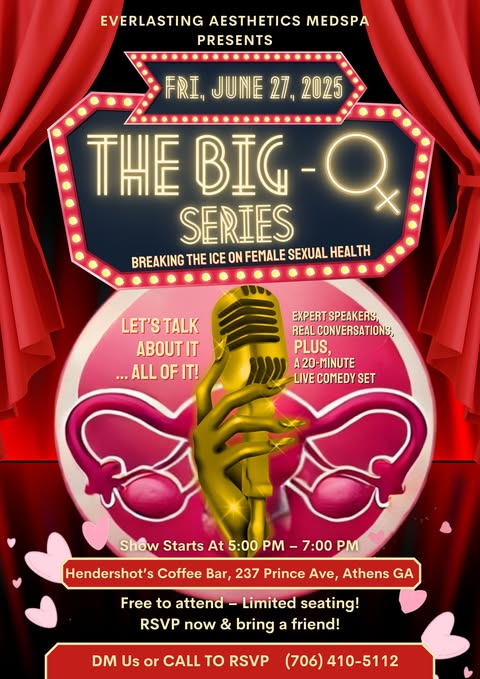 The Big-O Series, a bold and empowering night dedicated to female sexual wellness. Hosted by Everlasting Aesthetics Medspa, this event blends laughter, expert insight, and real talk on the topics that matter most—from libido and pelvic floor health to hormones, confidence, and intimacy.