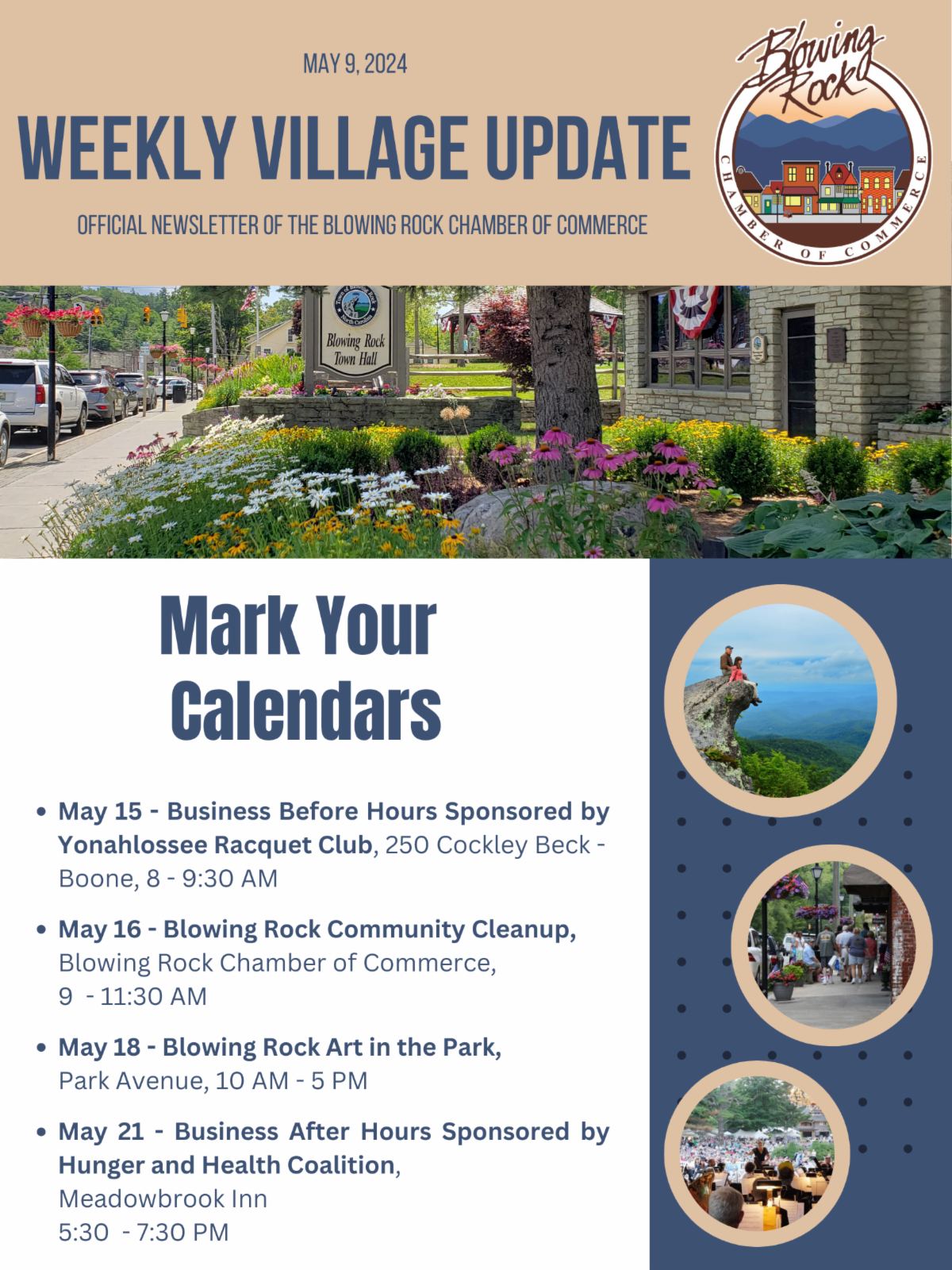 To submit your news to our weekly newsletter, email Cathy@BlowingRock.comby Wednesday.