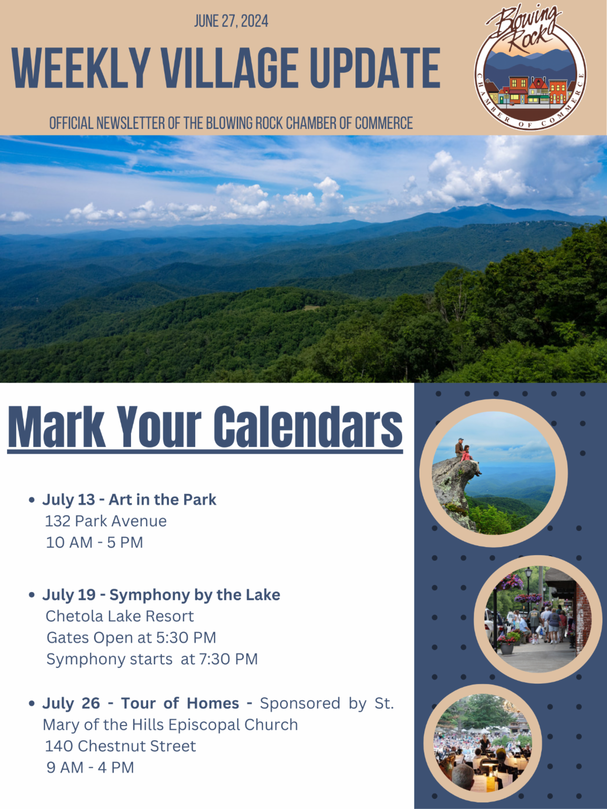 To submit your news to our weekly newsletter, email Cathy@BlowingRock.com by Wednesday.