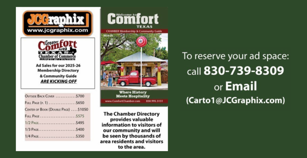 Join us at 5:30 pm at the Old Bank Building (7th and High Streets) for a celebration of Comfort’s heritage! Hosted by the Comfort Heritage Foundation, this community Open House invites everyone to learn about our town’s rich history and the Foundation’s role in preserving it. Enjoy a fun, interactive history game, live music by Comfort’s own Shane Stumpf, tasty nibbles and refreshments, and a chance to tour a Comfort Volunteer Fire Department truck. Interested in joining the Foundation? We’d love to sign you up. Everyone is welcome—come be part of the fun!
