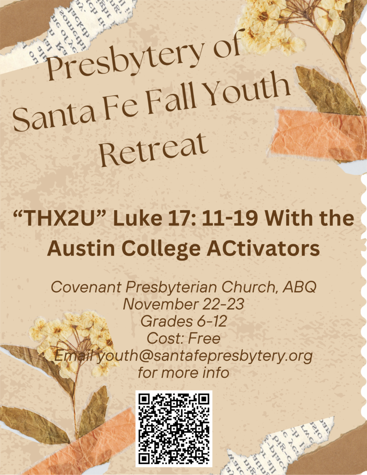 This weekend I will join our elder commissioners Liz Bushma, Paige Furlano, and Marjorie Davidson at the Presbytery meeting at Ghost Ranch. This is our annual meeting where we elect new leaders for the Presbytery including a new Stated Clerk. I am the chair of the Presbytery Personnel Committee and we will be nominating Tanya Blankenship to succeed Stephen Rhoades (who preached at