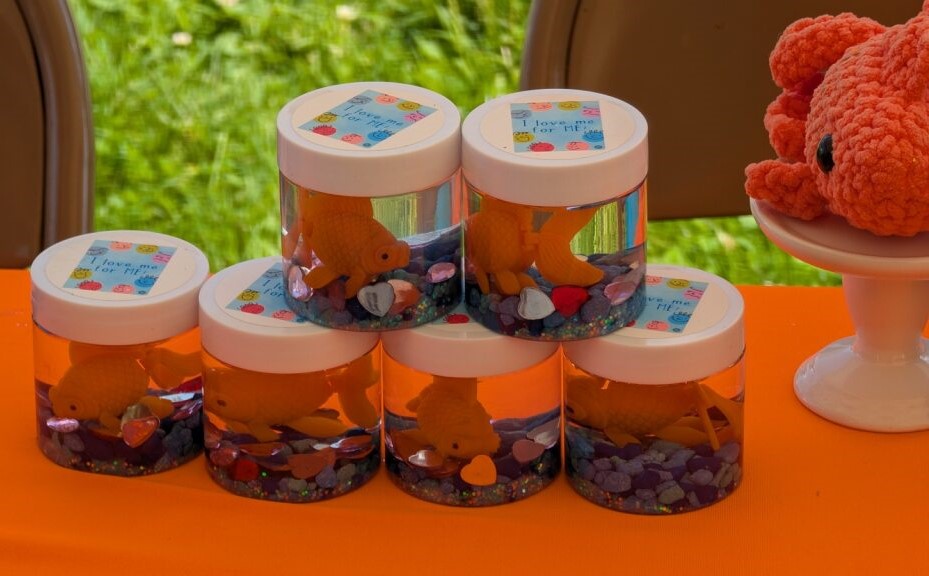 The only thing better than storytime and crafts is storytime and crafts with guest reader and author Stephanie Lock under the tent! Thanks to Miss Stephanie for treating us to her excellent story, If Goldfish were Bluebirds as well as her “sensory fish jar craft”. It was a great time!