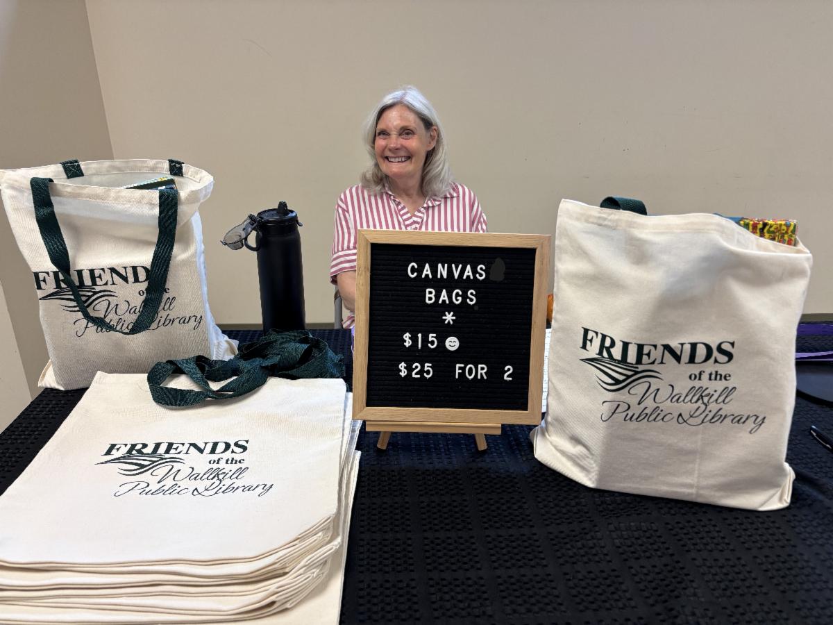 Now we hope you will purchase a beautiful, sturdy canvas bag with our logo to continue our efforts. One bag costs $15, with two bags for $25. You can purchase one (or two!) at the library circulation desk.