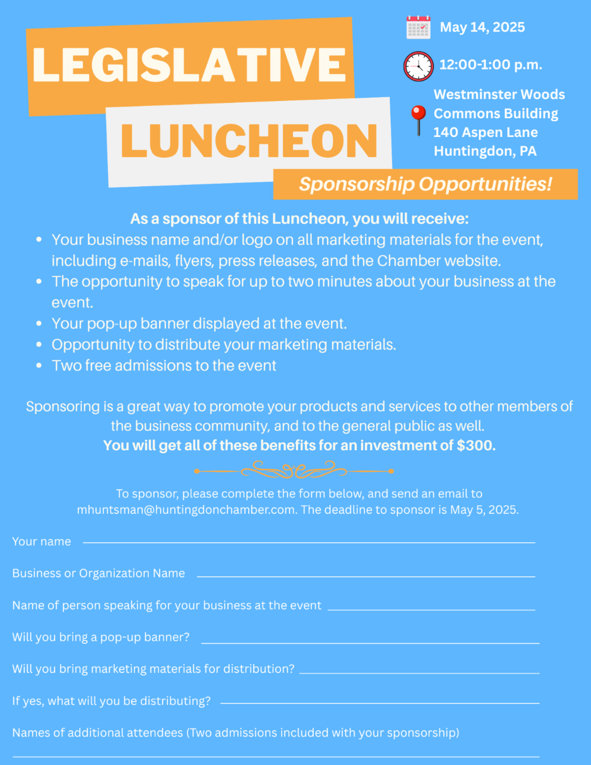 Contact MacKenzie at mhuntsman@huntingdonchamber.com.