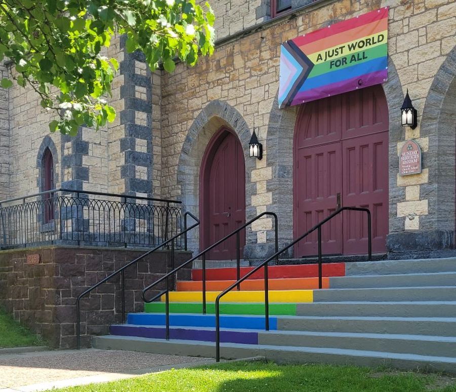 A few weeks ago, College Street Congregational Church members Laura Labrie and Scott Mackey freshened up our front steps with a beautiful coat of rainbow paint. This past Sunday, a weekend visitor to Burlington from California, saw the steps as she was wandering around town (how can you miss them?) and decided right then and there to come worship with us! Could Rainbow Steps be the new Red Carpet of welcome to our churches?"