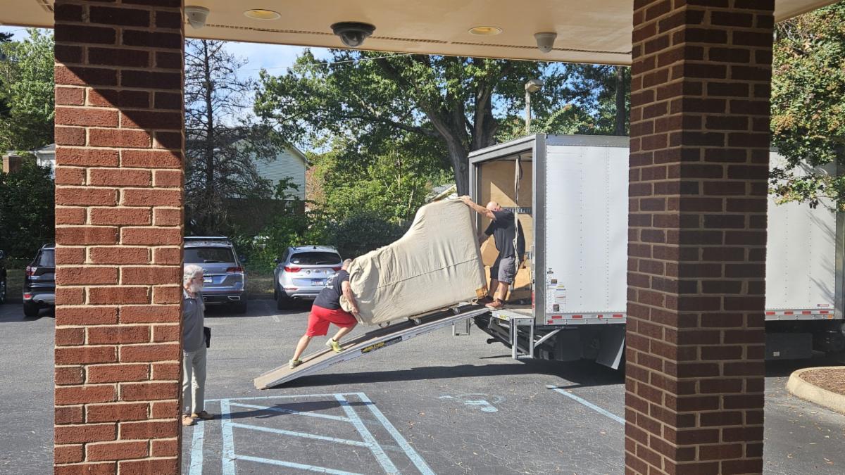 Lifting and moving were provided the day of move in. Shelves were filled with donated food items , cleaning supplies and paper products. Meals were delivered, welcome footprints signed and cards collected.
