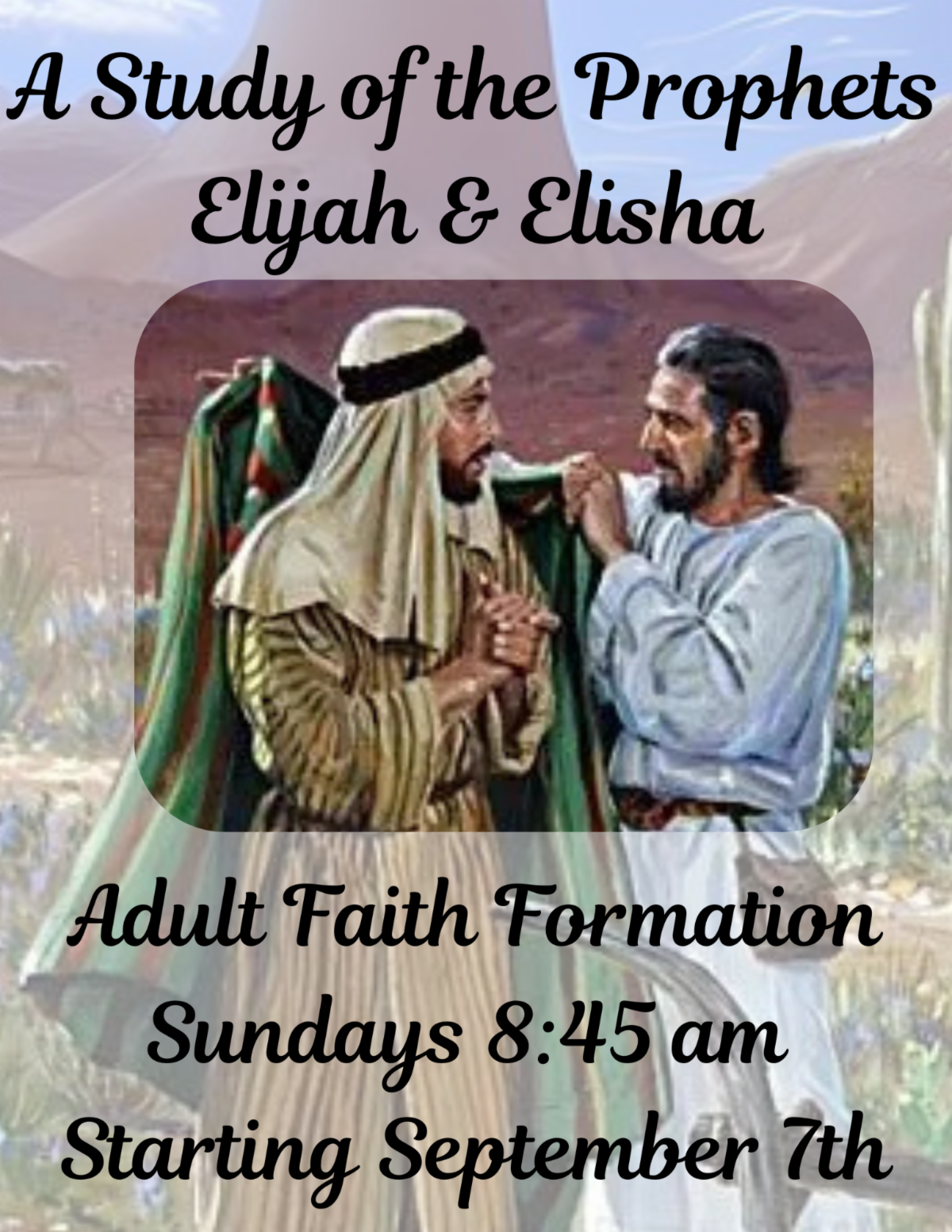 September 7th, we will begin a study of the prophets Elijah and Elisha. This will be a 16 week study, led by Nelson Hodges. Join us in the parlor at 8:45! All are welcome, and no advance preparation is required.