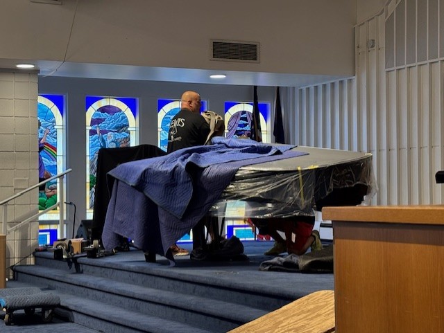 Thanks to the generosity of many church members, visitors, and anonymous donors, we now have a beautiful Steinway Model B piano in the sanctuary. This piano is like new, but was hand-built in 2021 in Astoria, New York, and served as a Concert and Artist piano for the Kennedy Center in DC for three years. It was played in many concerts before being retired from the program this past spring. It has a lovely tone, deep and soulful, and the shiny polish finish is the most protective coating available. It was delivered to KGPC yesterday, and afterward the piano that has served us for approximately 50 years went to the home of its donor descendant, Janet Phelps.
