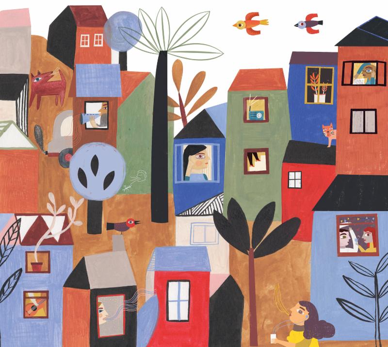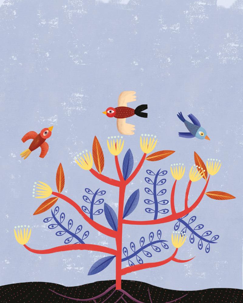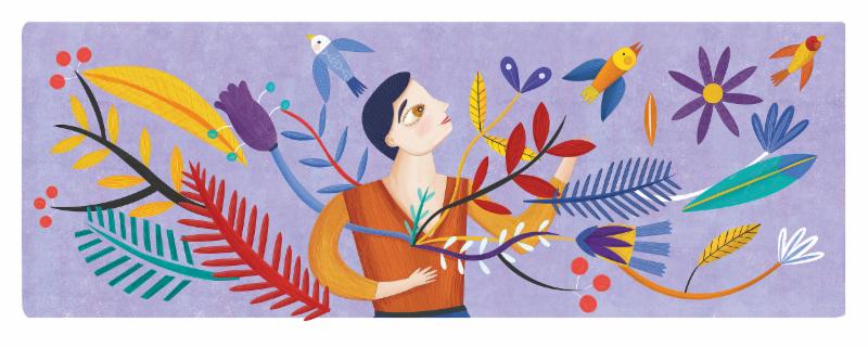 She also illustrates for magazines and corporations such as Nexos and BBMundo magazines, as well as Google and Hola combo. This colorful piece "My Aunt Blossoms" was featured by Google for International Women's Day 2018.
