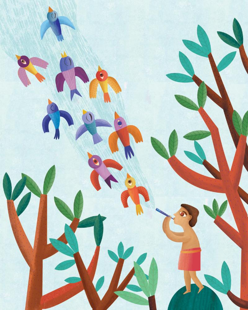 Here is a sampling of some of the vibrant interior full-color spreads from Cuentos y Leyendas de América Latina celebrating stories from Ecuador, Uruguay, and Guatemala.