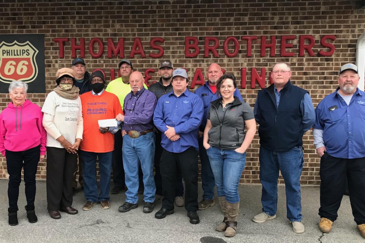 Thomas Brothers Oil company recently provided the County Outreach Ministry with $2000 to assist with providing meals to the Caswell community.
