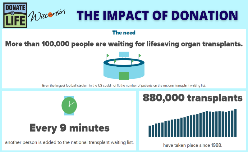 - In Wisconsin there are more than 1,800 people waiting for a life-saving transplant.