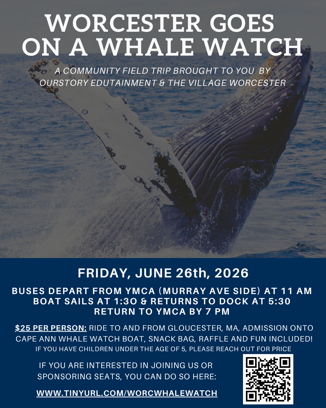 If you are interested in joining us or donating tickets for community members who need a little support? You can do so here: www.tinyurl.com/worcwhalewatch