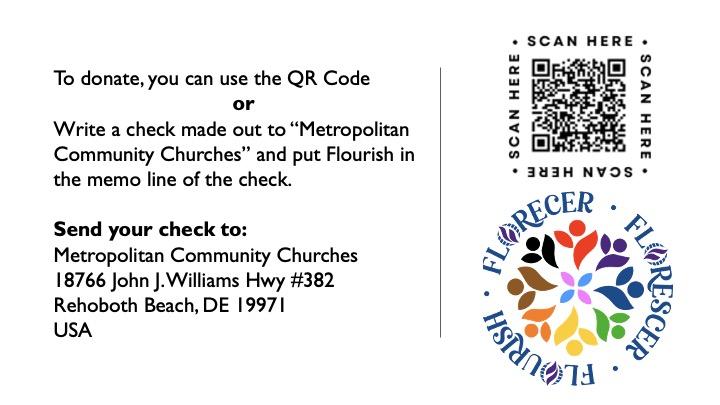 Each year, MCC congregations are encouraged to hold a special offering for the denomination for Fellowship Sunday or Fellowship Month. This year’s offering will be dedicated to Flourish, which is MCC’s leadership development program to train and develop existing clergy and lay leaders, bas well as a new generation of leaders within MCC.