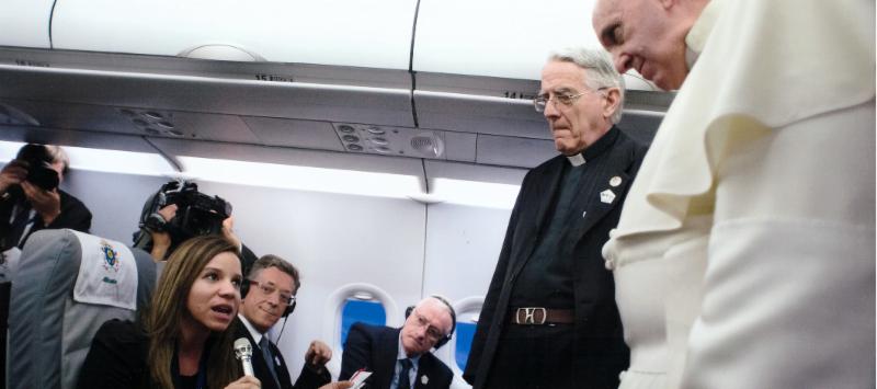 "The Pope holds a press conference on board the flight, as the papal plane heads back to Rome," Katia said. "Journalists are divided into groups depending on their language. I was chosen to represent Spanish-speaking journalists on flight. My question dealt with an off the cuff speech he gave to hundreds of youths in Sarajevo. His speech focused on striking the right balance between life and the Internet."