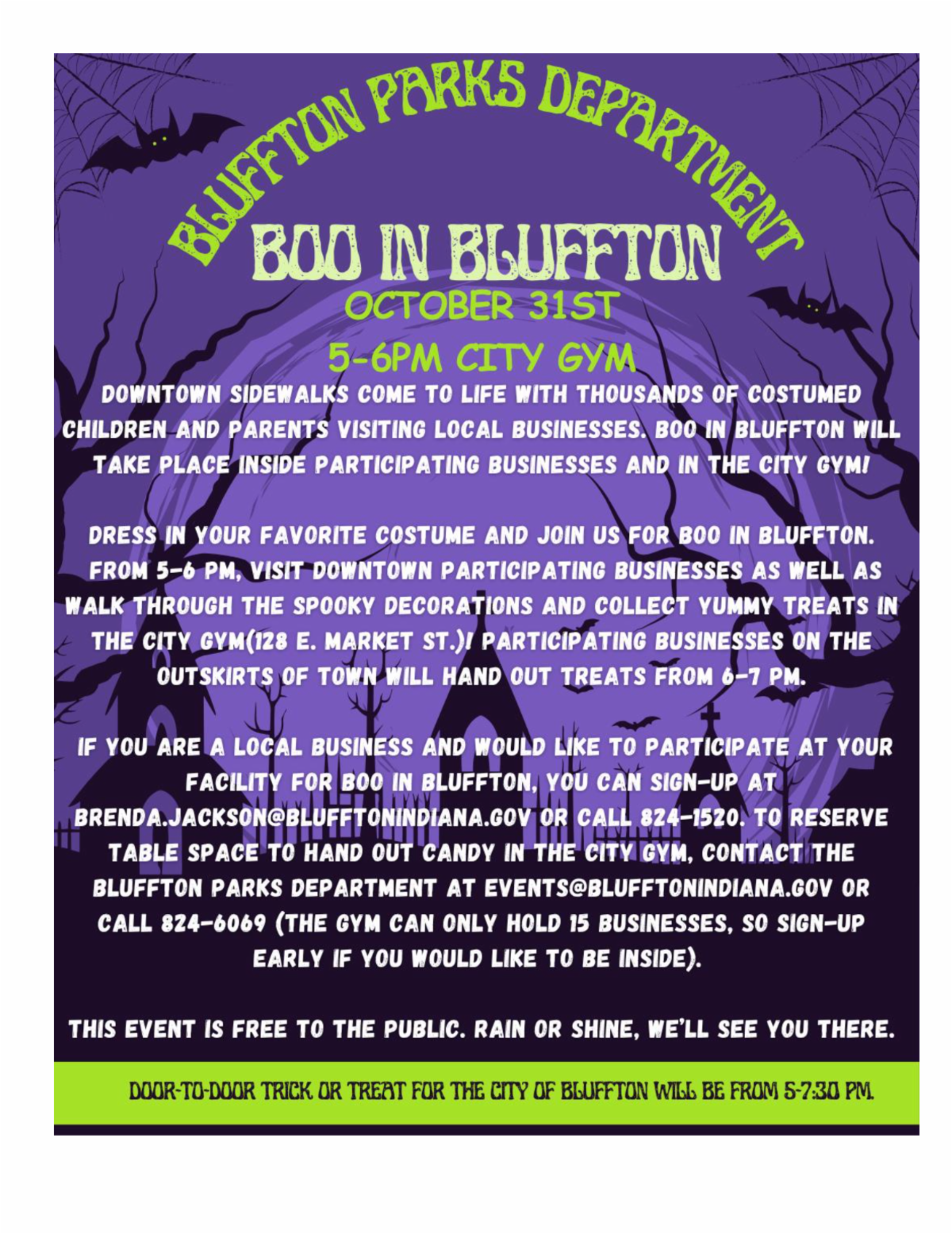 October 31st: "Boo in Bluffton" from 5-6pm, Bluffton City Gym, Etc.